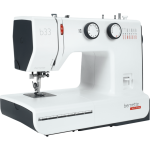 The bernette 33 mechanical sewing machine with stylish Swiss design is the perfect model for beginners. Its simple operation makes it easier to learn the basics of sewing. This machine is durable and robust with excellent stitch quality and all the functions a new sewist will need. All the settings can be adjusted by turning the two knobs. The bernette 33 offers 15 stitches, including buttonholes, and has a maximum stitch width of 5 mm. The 2-step presser foot lift, the needle threader and the manual thread cutter make it easy to thread the machine and get started. 5 different snap-on presser feet are included with the bernette 33.