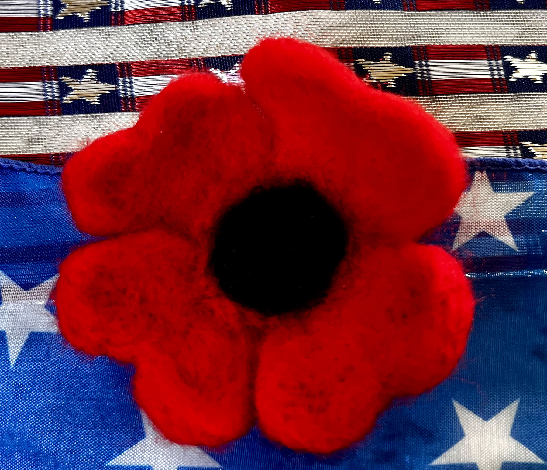 Create a needle felted Memorial Day Poppy and learn the meaning and tradition behind the flower itself. You will be led through the steps to sculpt this timeless keepsake using only wool and a barbed needle.You will leave with a memory piece, and the knowledge to make more on your own if you wish, for friends and family. You will use a stencil to get each petal the perfect shape each time.